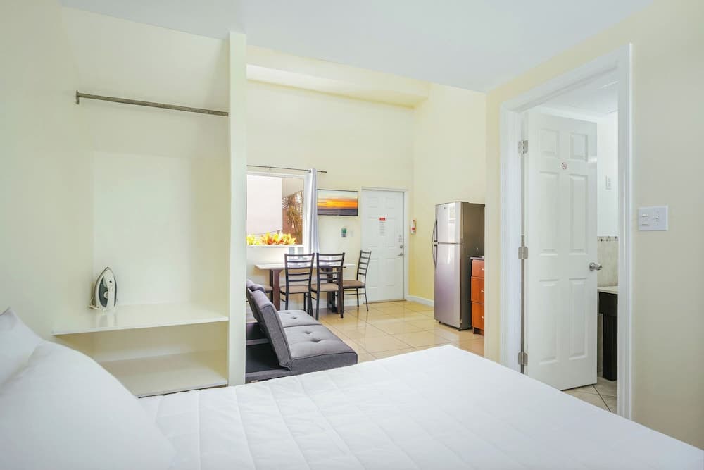 Reserva una de las 9 habitaciones con cocina básica, frigorífico/congelador grande y placa de cocina, y disfruta de una estancia inolvidable. Para los momentos de ocio, tienes una por cable. Entre las comodidades, se incluyen una zona de estar separada y microondas, además de un servicio de limpieza disponible de forma limitada.